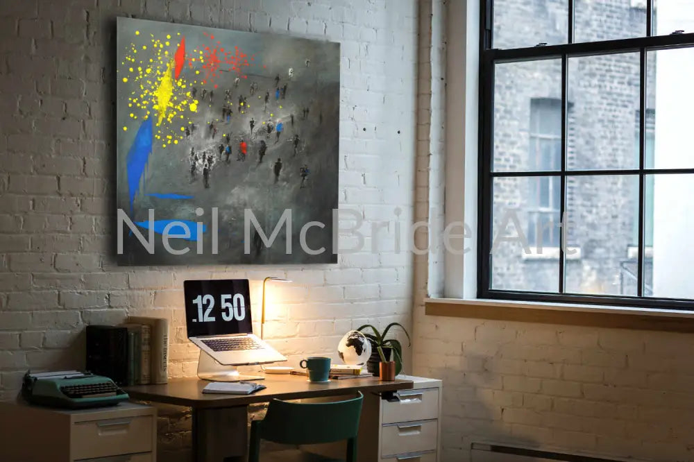 My Exhibitionist Paintings piece is an impression of paintings exploding colour into a gallery interior.