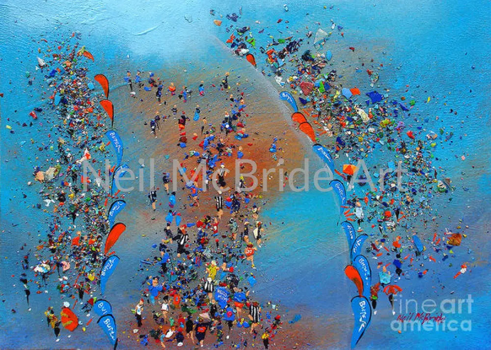 This fun packed art print is a big memento of the Great North Run. These paper prints are available from 14" to 40" wide so you can fill your walls and re-live the dream at home.