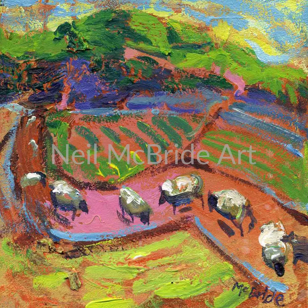 This little painting depicting a sheep on a Drovers Road is loosely based on the road towards Sutton Bank near Thirsk in North Yorkshire.