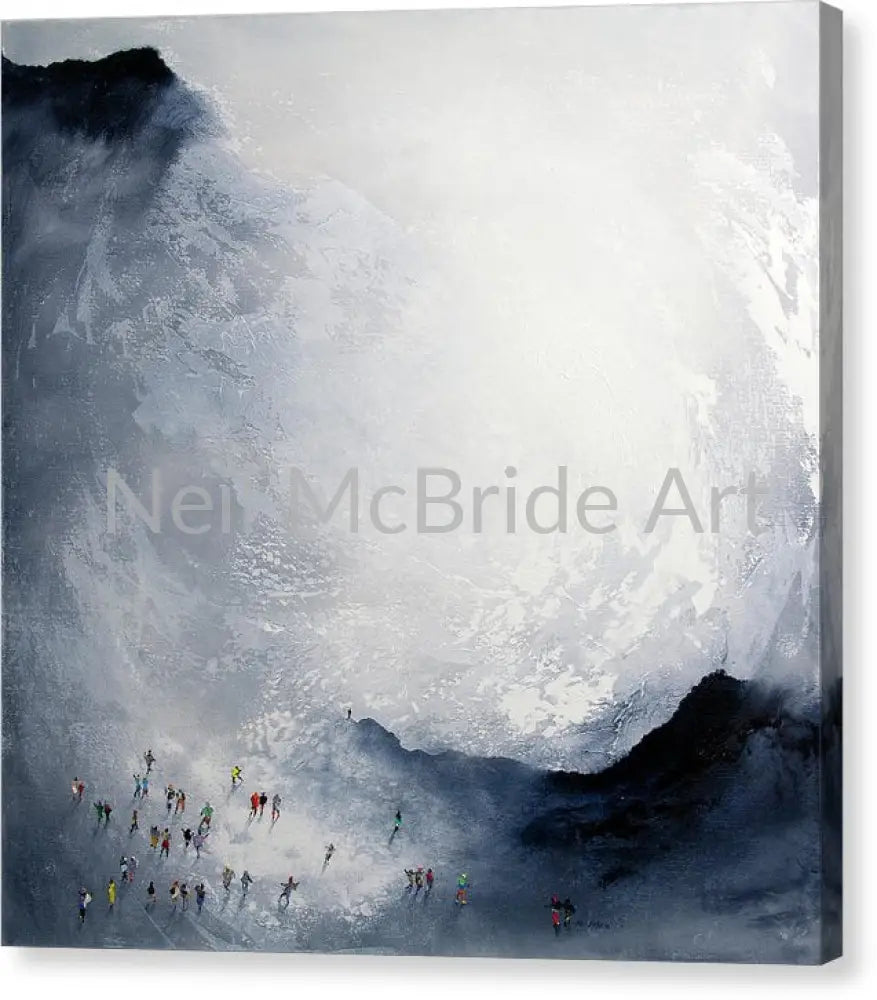 Picture yourself with the happy crowd of hikers gathered in the bottom left of the canvas as they prepare to negotiate the majestic fells above them.