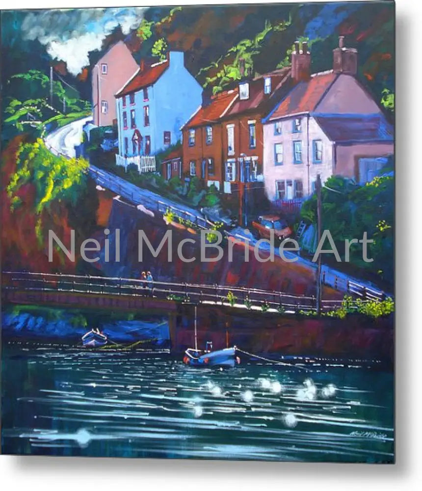 Reproduced from the original painting, this Staithes art is now captured on a high gloss metal print to enhance the rich colours.
