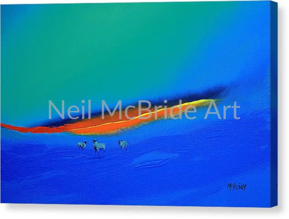 Available in a variety of sizes up to 36 inches wide, this contemporary artwork is enhanced by the texture and depth of a stretched canvas, giving it a dynamic, tactile quality.
